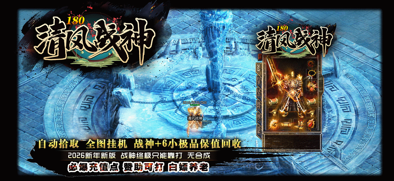 ▶游戏介绍:清风战神+6小极品·自动拾取·全图挂机·赞助可打·保值回收·魔龙教主爆一切.